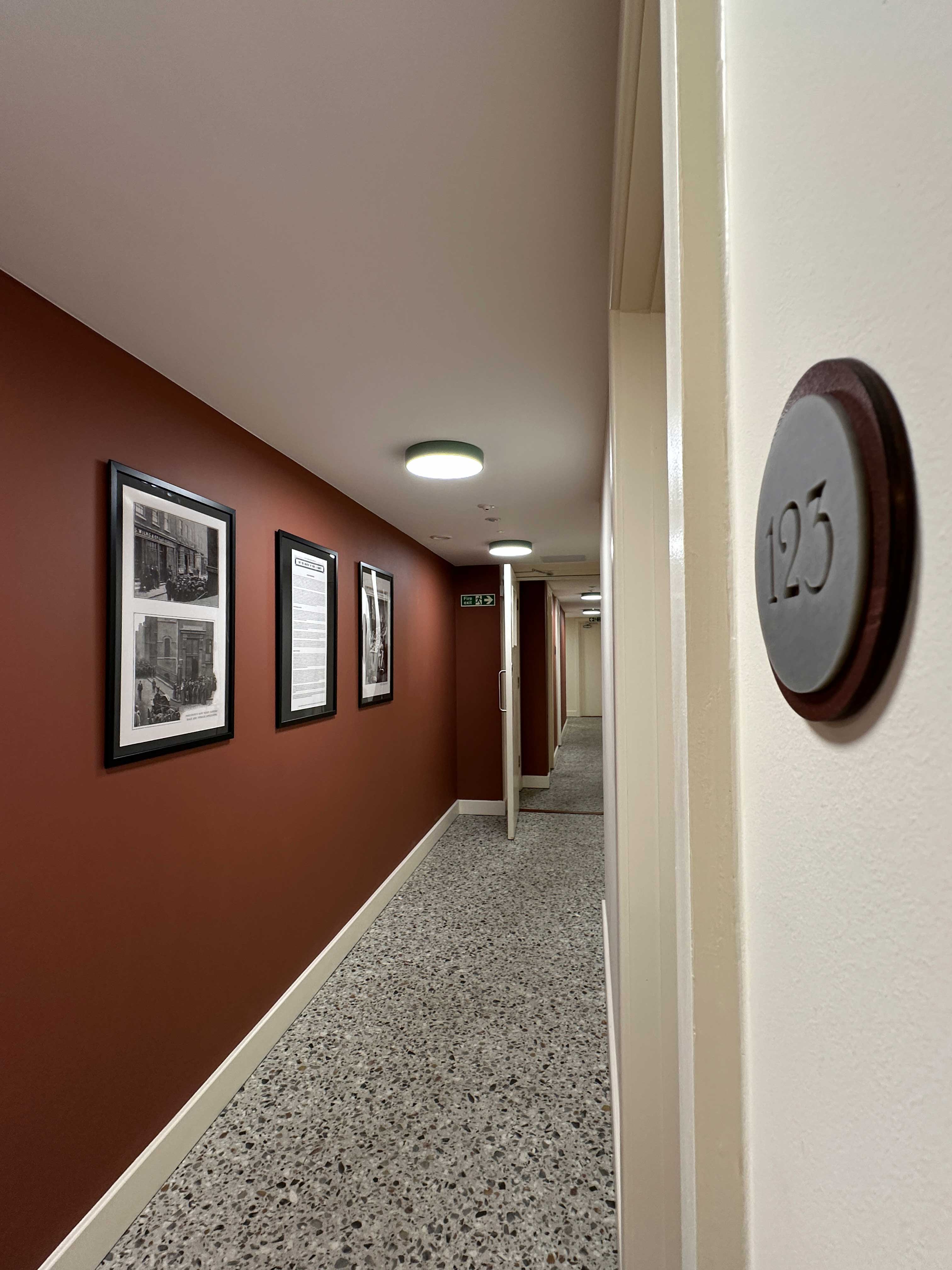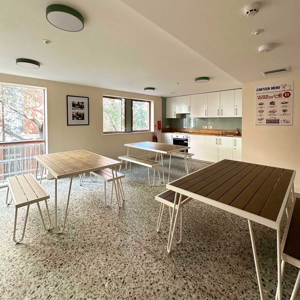 Our accommodation is simple, warm and clean, designed for privacy and dignity. Most rooms have compact en suite facilities and a kitchenette. Where facilities are shared, each room has its own handwash basin and fridge. All our buildings have a 24/7 reception desk. Daily cleaning and on site maintenance. Subsidised meals and laundry. Free WiFi and complimentary breakfast.